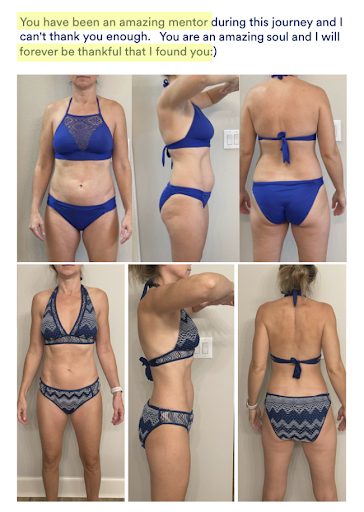 "I am so happy I put myself first to do 1:1 vs second-guessing everything! I was the person who tried to lose 'that last 10lbs' for literally well over 10 years...with Kristie I'm eating way more and losing the weight! Can't recommend this enough!"